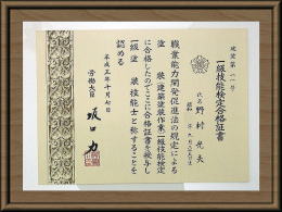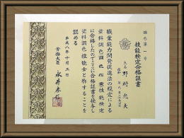 | <資格> 一級塗装技能士 単一等級調色技能士 有機溶剤作業主任者 (第880026号) 足場の組立者作業主任者 (第090247号) |